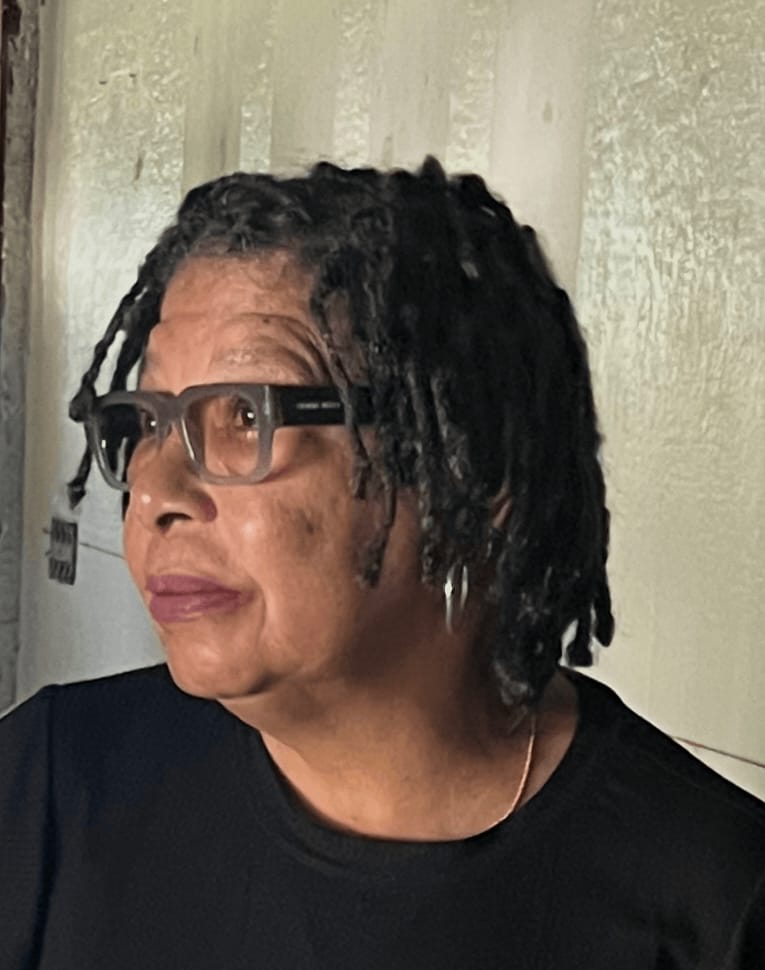 Cheryl Booth in the ruined home on North Duss Street she and her husband James shared for 16 years. Credit: Ben Iannotta